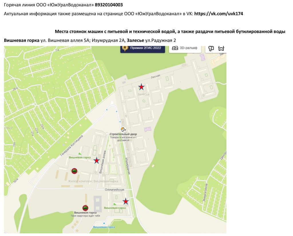 Уважаемые потребители, ниже информация о цистернах с питьевой водой, которые завтра будут размещены с утра